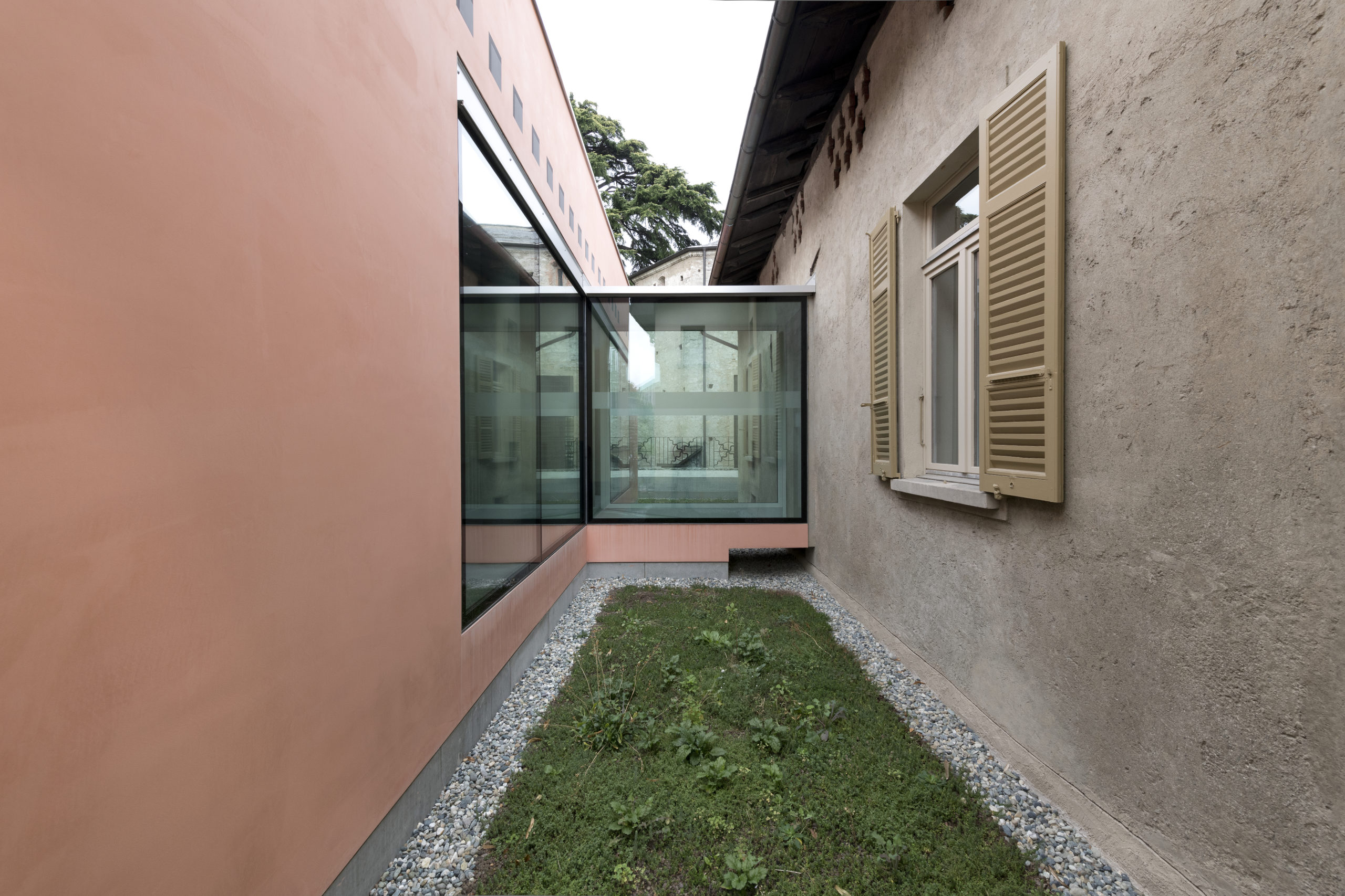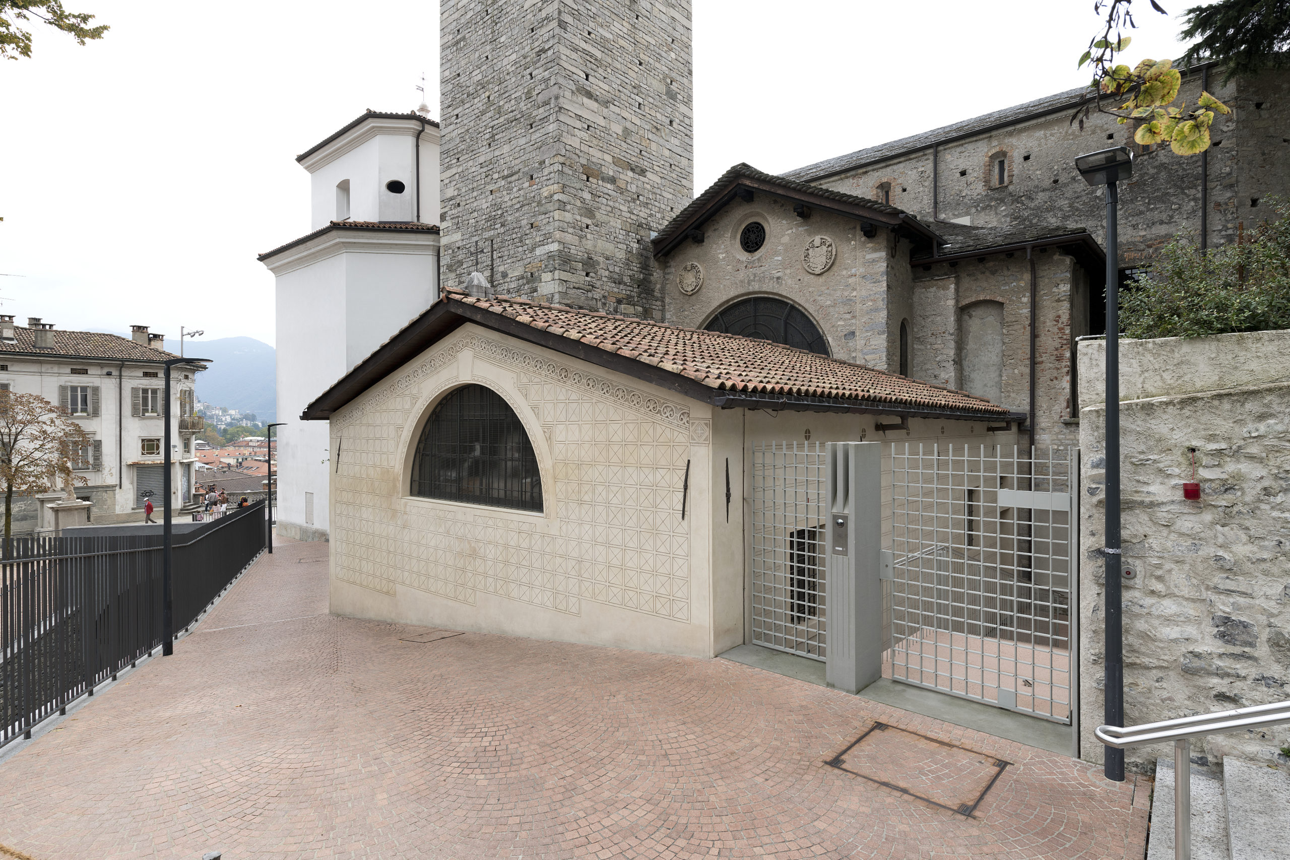 Un nuovo edificio, quasi totalmente interrato e predisposto per esposizioni e attività culturali, è stato progettato e in parte realizzato in parallelo al lavoro di restauro.