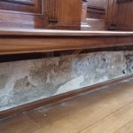 Nella zona absidale della muratura perimetrale est è stato rilevato un problema di umidità di risalita capillare, che ha danneggiato sia la muratura sia gli stalli lignei del coro e la predella sottostante.