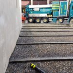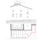 L’intervento consiste in uno scavo lungo la parete est fino alla quota del sistema di drenaggio esistente, così da verificare la presenza di malte non idonee. Successivamente verrà posato un nuovo sistema di drenaggio con un bauletto di materiale traspirante (ghiaia lavata). Sopra di esso sarà ripristinata la pavimentazione, lasciando una piccola fascia lungo le pareti perimetrali per favorire la circolazione dell’aria.